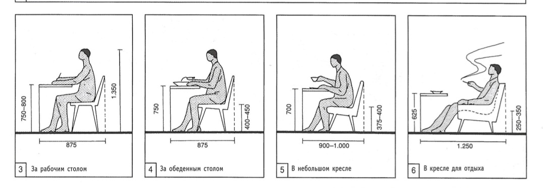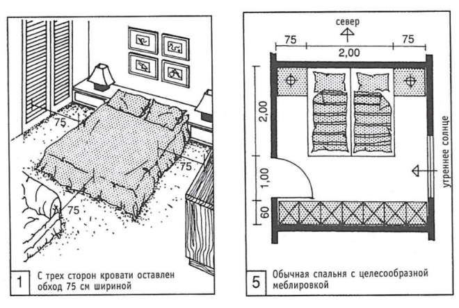 По Нойферту, общие помещения должны быть как можно ближе к входу, а жилые комнаты — выделены в более тихую часть. В квартире желательно иметь дополнительные места для хранения.